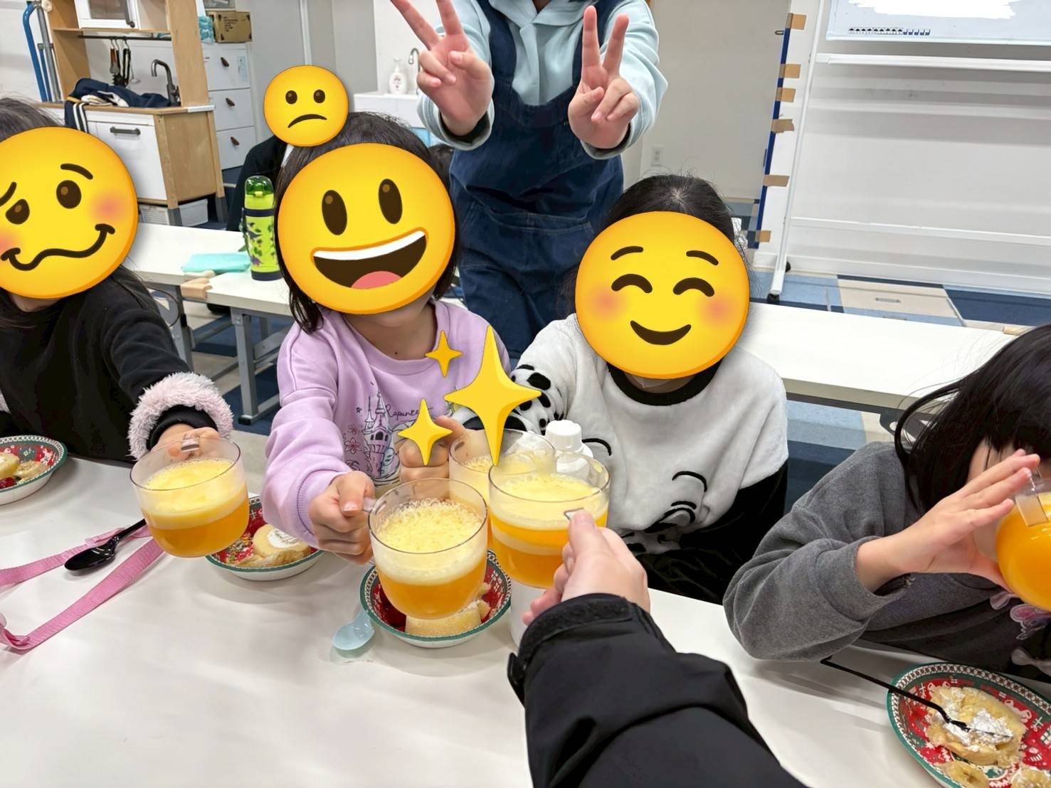 それぞれ「カンパーイ!」と言って、美味しく食べて、笑顔がたくさん溢れており、楽しんでくれました☺