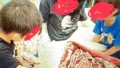 動物の積み木を使って上手に組み立てていきました。落ちないように、とても集中しています。
