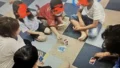 カタカナを読みながら、パズルに挑戦しています。