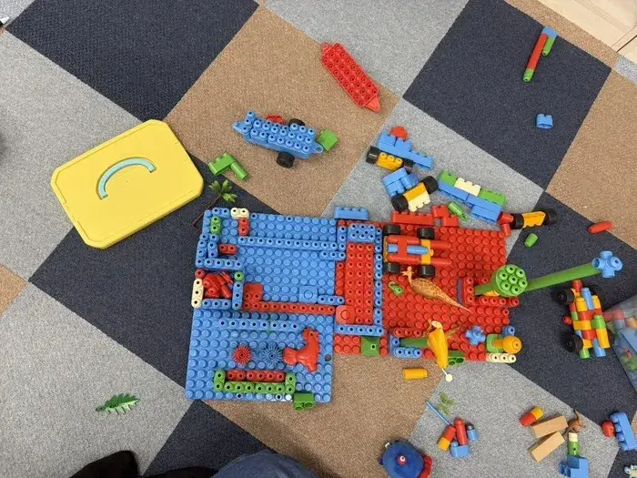 子どもたちと一緒にブロックでいろいろな物を作って楽しく遊びました。