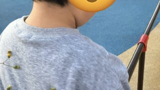 ひっつきむし 2025年1月27日 ぴあぱーく妙典に行って遊具で遊んだり土手を駆け上ったりして遊びました。 よく見ると背中には…… ひっつきむしが🧐 元気よく走り回ったからね☺️
